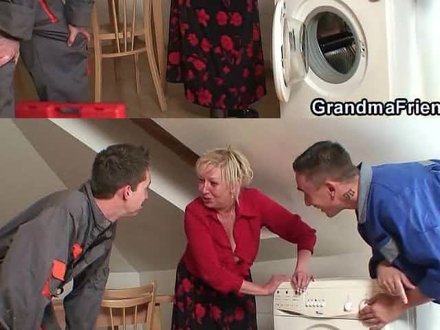 GRANDMA ALLIES - Breasty old grandma sucks and rides 2 jocks