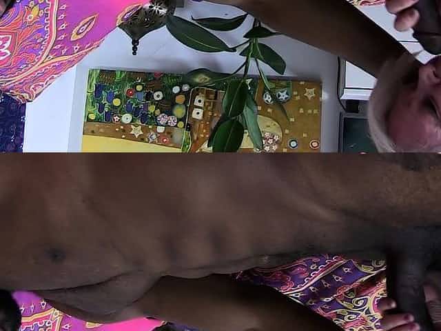 Older with saggy melons sucking the cum throughout a ramrod and showing prize and swallowing!