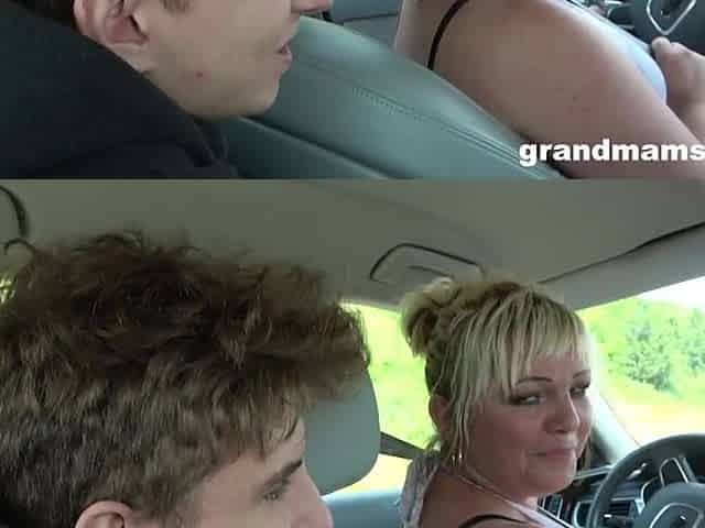 Granny Irene - Big ass blonde mature GILF with fat ass gets cum on face in old and young hardcore