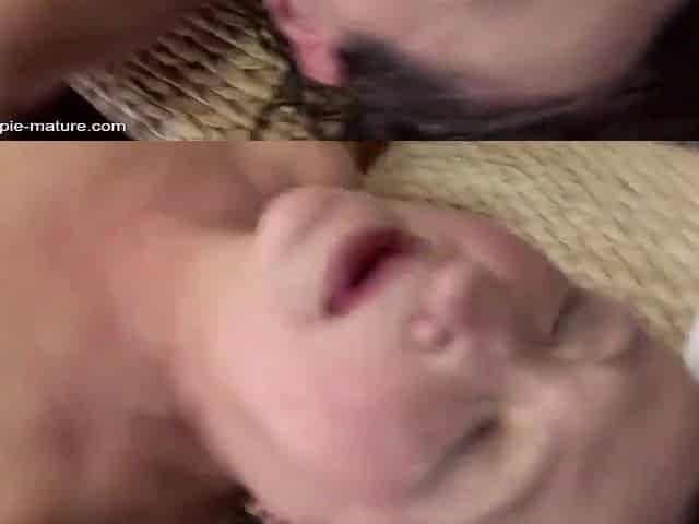 Cumshot of two mature mothers in a crazy gangbang