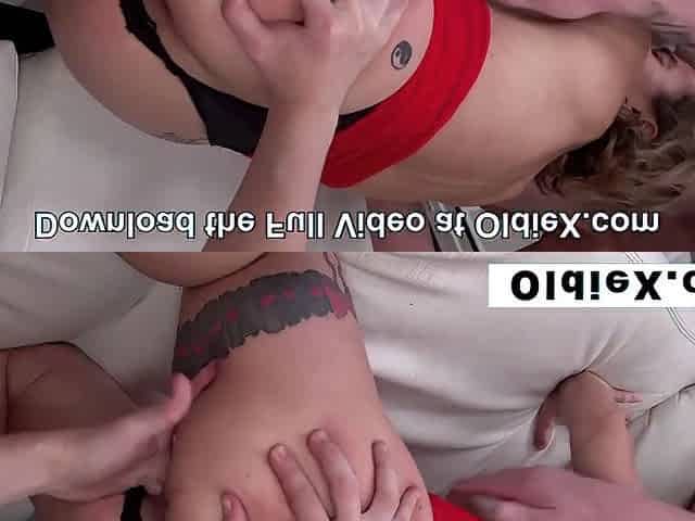 Midget cougar gangbanged by three horny guys for OldieX