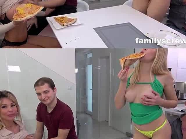 Hungry StepFamily pours Creampie on Pizza