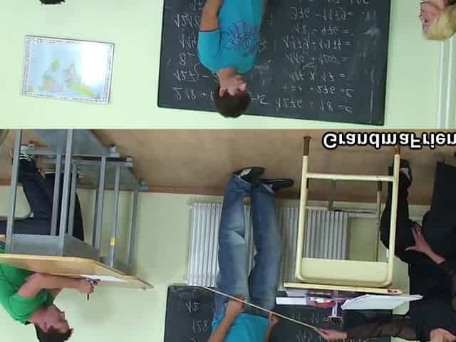 Two Buddies Fuck Blonde Granny Teacher From Both Ends