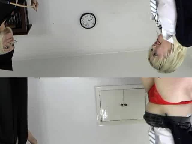 Petite blonde teen gets fucked by a granny with a strap-dildo