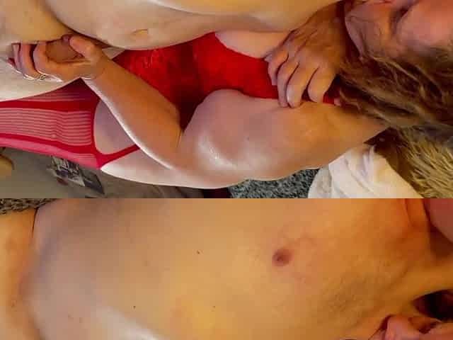 Older granny in red sucks shlong