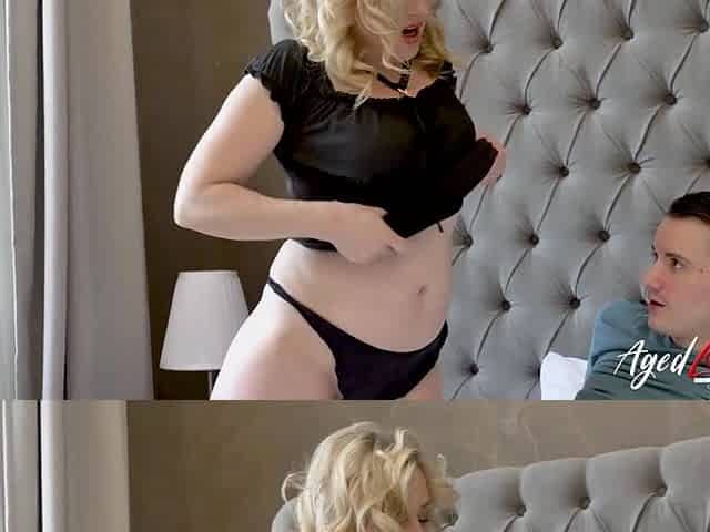 Naughty Granny Koko Blonde Strokes And Takes Young Cock Deep