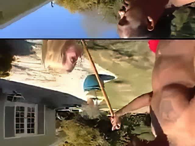 Lola Marie and Lacey Starr in hot interracial action by the pool.