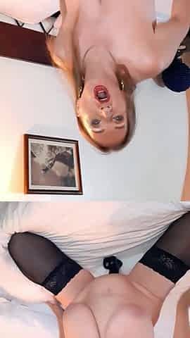 Blond granny in nylons rides stranger's schlong