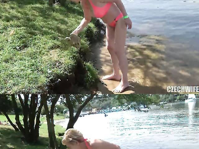 Mature lady with a sexy ass has fun with a hung stud in the outdoors