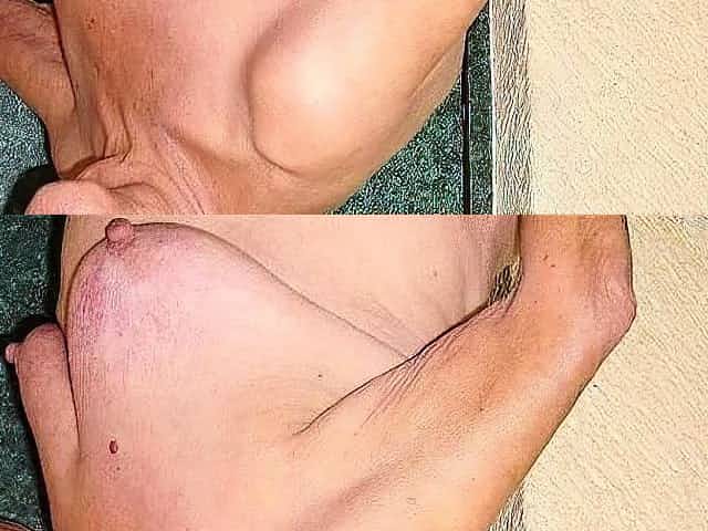 Ugly wrinkled mature whore Vendi gets tits massaged and twat fucked with toy