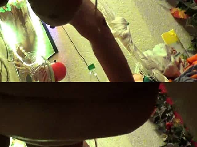 70 year old granny masturbates with a dildo that is too big