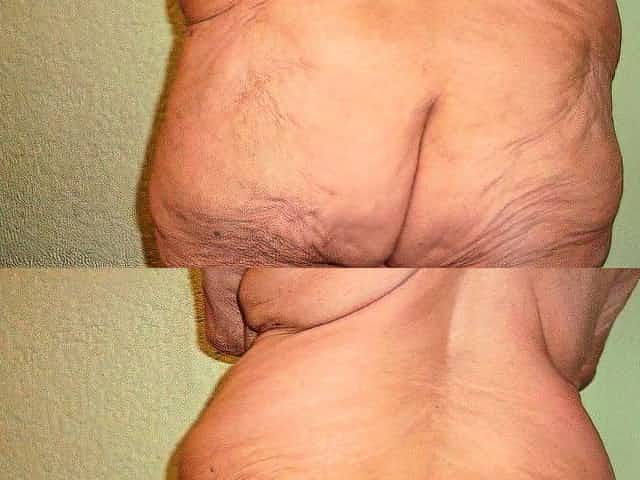 Mature BBW with big round butt and hairy pussy strips