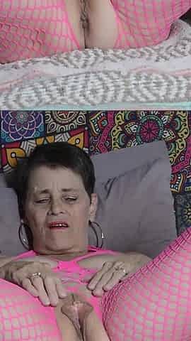 Big-boobed Granny In Black Stockings Drills Her Mature Pussy With A Pink Toy