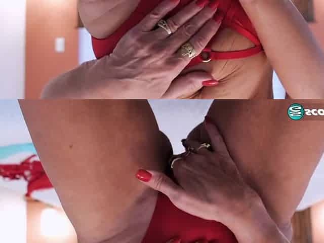 Grandma Hot Strip Masturbating And Fisting In Hot Red Lingerie