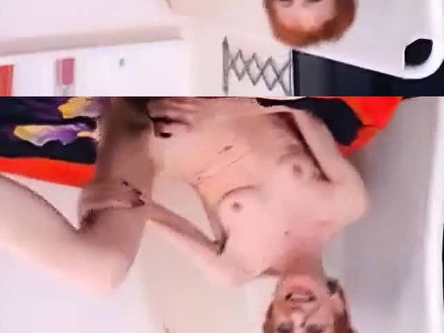 Skinny hairy granny playing on cam