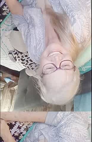 Our oldest GILF returns, so she shows her tits and touches her old pussy.
