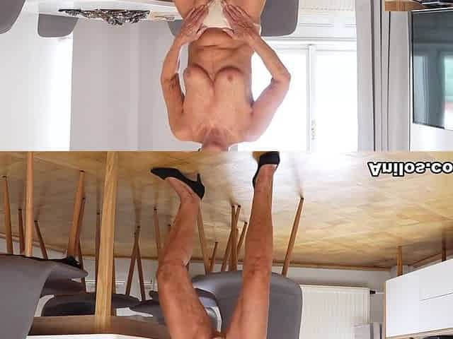 Beautiful and sexy granny Sylvie is masturbating her wrinkled pussy