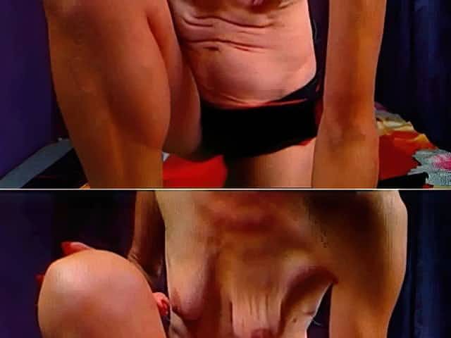 UGLY GRANNY POSES FOR CAM AND POKES ASS