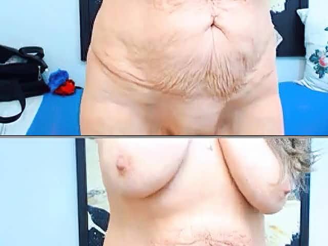 Horny granny shows her mature tits and pussy and she start