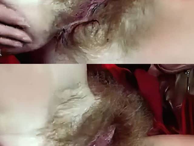 Webcam solo with a granny demonstrating her extremely hairy cunt