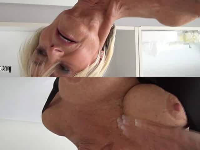 Blonde German Granny in Stockings Gets a Facial After a Hard Fuck