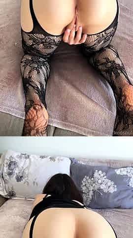Marva only stays in her stockings and starts boning herself with a toy