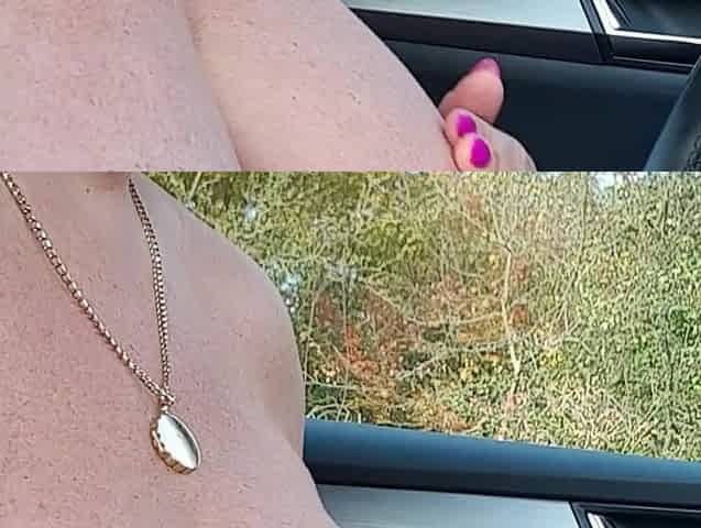 My second trip out in the car this morning, in that skimpy little pink net dress, stockings and suspenders, with my tits out, no