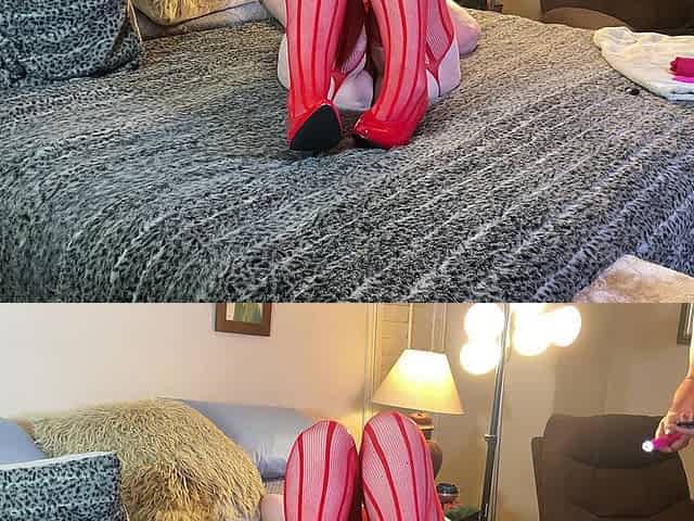 Trisha toying on the bed