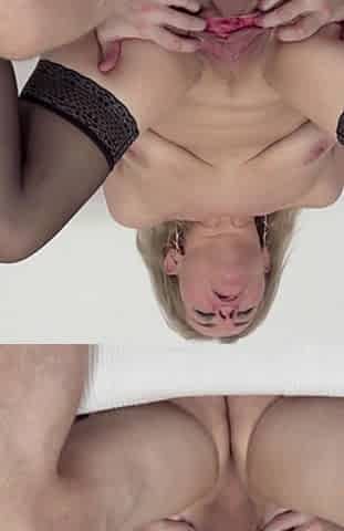 Blonde-haired Granny In Black Stockings Pleasures Herself In Bed