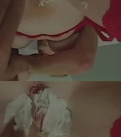 Open corselette and glass dildo handling