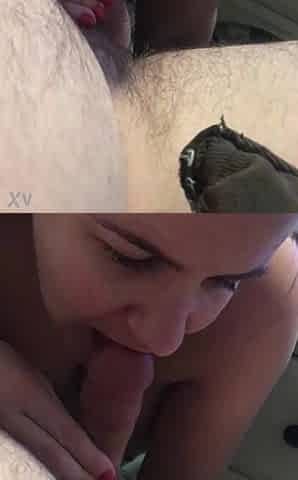 French cutie Miss Creamy deepthroating a newbie at a nude beach in Greece with a cumshot