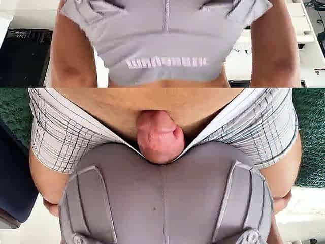 Grinding trainer's penis , finish with large jizz flow