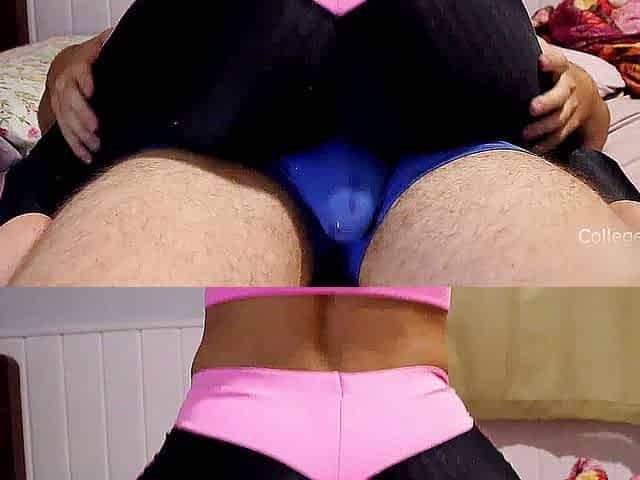 Dry humping ass grinding in spandex leggings till he cum in his underwear, back view