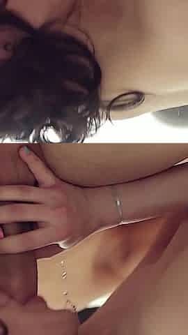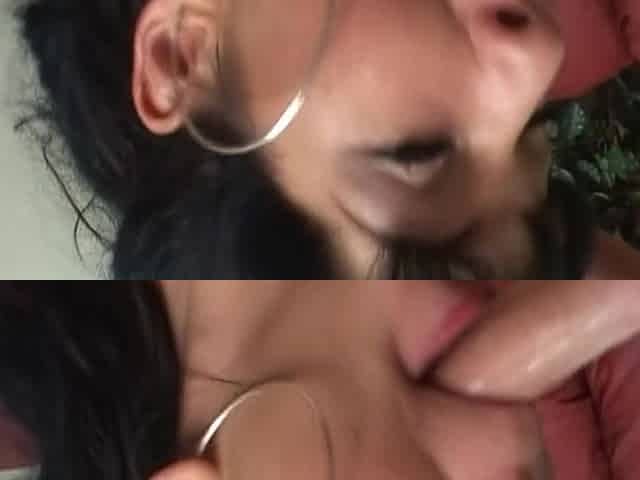 Small tit brunette gives blowjob to a big cock