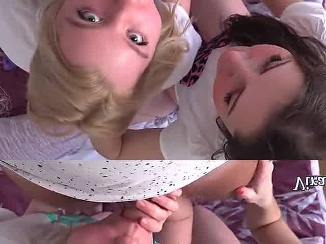 Two sluts blonde and brunette suck cocks and get pounded liv