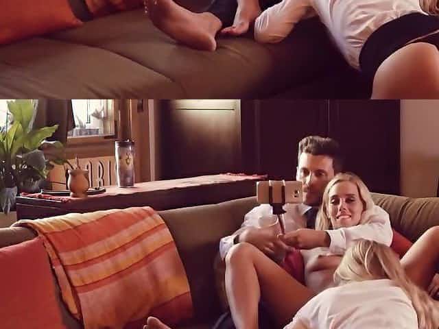 FFM threesome on the bed with Abbie Maley and Madison Morgan