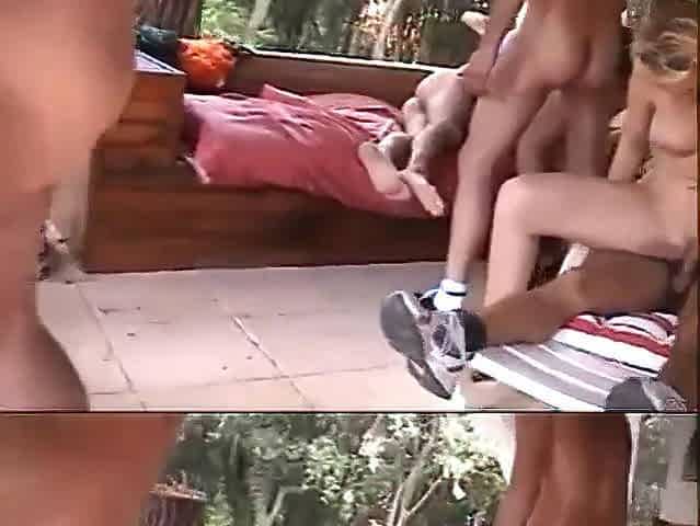 Poolside freeuse threesome fun with soon to be lonely housewife