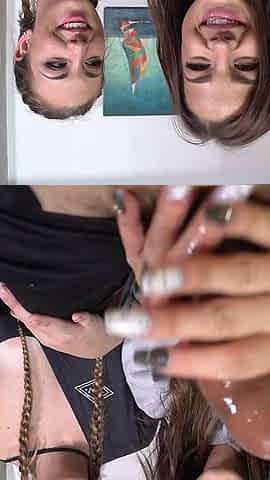 Mature Brunette Licks Dripping Wet Cock Head Smiling