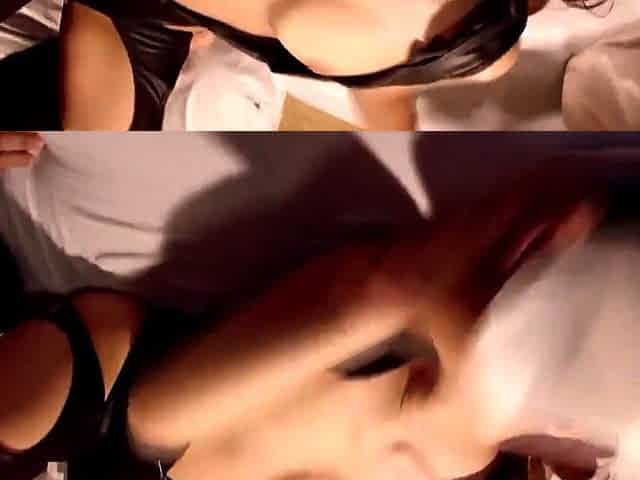 Horny brunette suck cocks and takes hard DP pounding live at