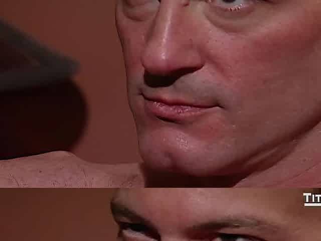 A blond woman with modest melons engages in doggy-style anal DP with complete confidence.