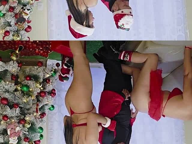 Christmas Three-some with my large-bootied stepmother and my large-breasted stepdaughter