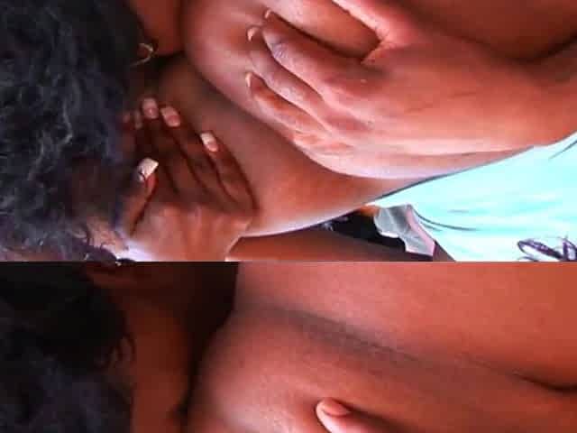 Black Guy Fondling Ebony Milf Juggs And Licking Cunt
