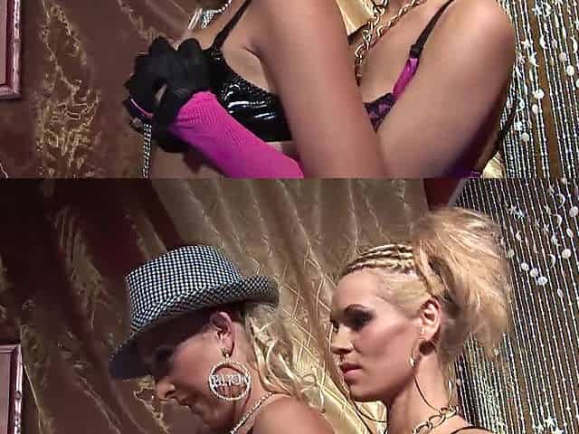 2 voluptuous blond honeys are confined in a room and engaged in vigorous raunchy activity.