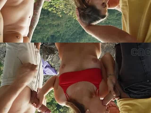 Cuck4k. husband invited 2 guys with Big Dicks to screw his wifey in the forest