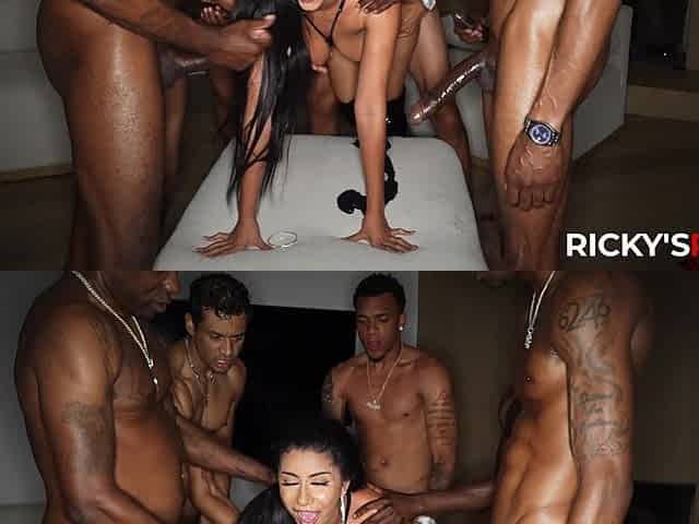 Big Tits Latina MILF Wets Everyone with Her Squirt in a Gangbang