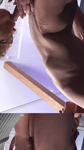 Daddy, Don't Peek! Bald-shaven, Tattooed Stepmom and Stepdaughter-passive Sex Dolls for Anal Fucking!