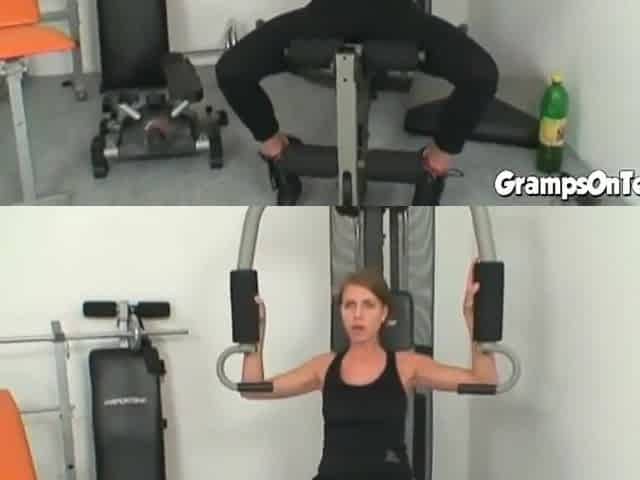 Fathers friend catches busty teen CeCe Capella in their home gym training