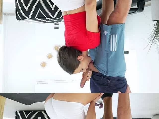 I caught my stepsister Mini Cooper working out, and after she finished, I had to take my pleasure with her mouth.