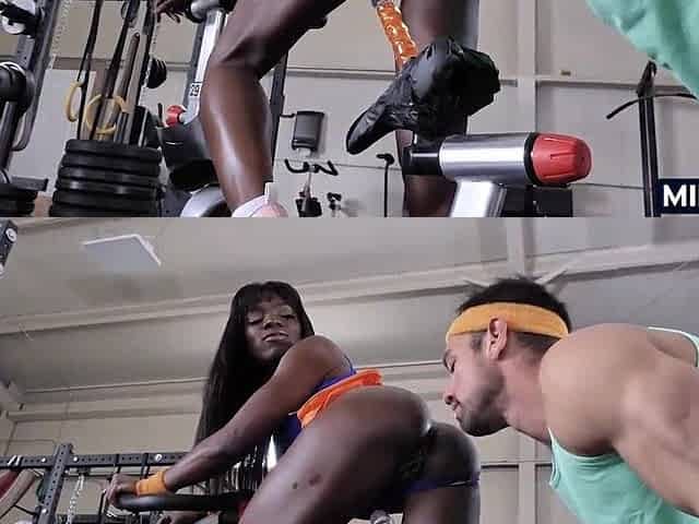 Gym goddess reislin teaches by smoking her trainer's cock then gam job riding on top and Doggy Style