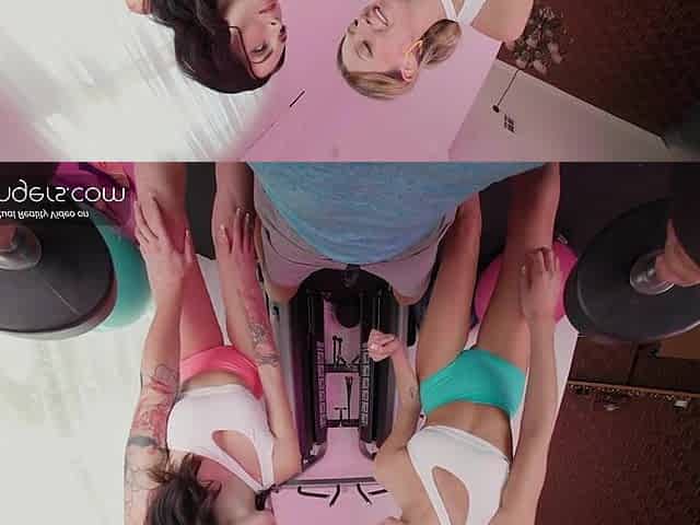 ORGY on sport gym. GROUP SEX! More super-steamy girls,